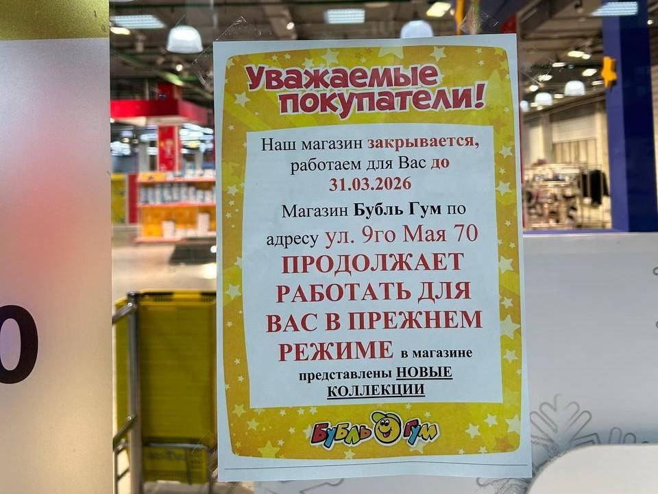 Магазин детских товаров «Бубль-Гум» в торговом центре «Комсомольский» в Красноярске завершает работу 31 марта. Эта точка была одним из первых арендаторов, открывшихся в ТЦ после его запуска в 2012 году, и на протяжении более десяти лет оставалась крупнейшим магазином детских товаров в округе.