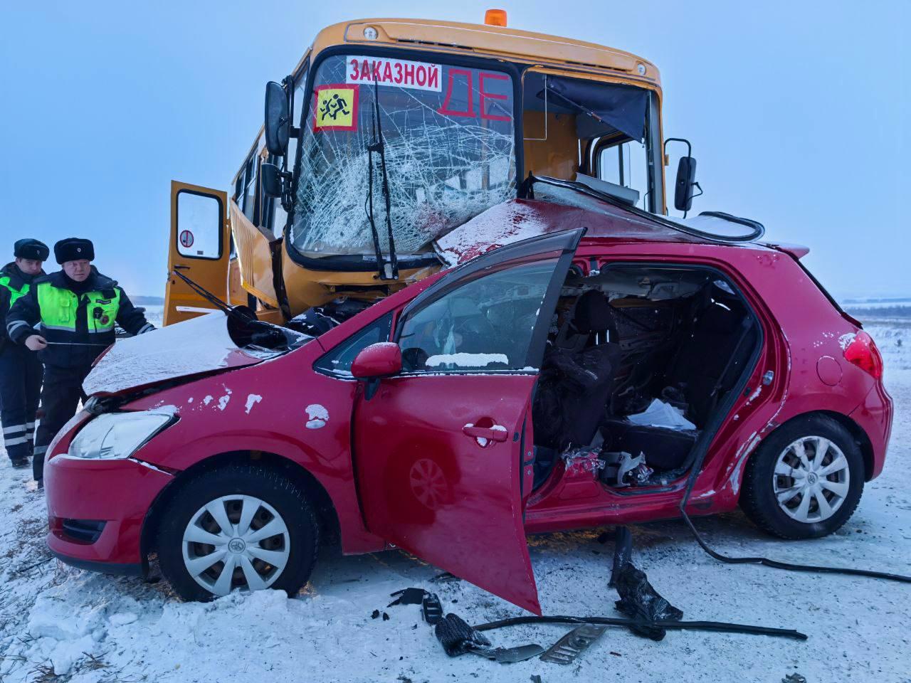 ДТП произошло 13 января на 35-м километре трассы «Саяны» в Минусинском округе. Столкновение произошло между автобусом ПАЗ, перевозившим школьников, и легковой Toyota. Водитель иномарки, 38-летняя женщина, скончалась на месте от полученных травм.