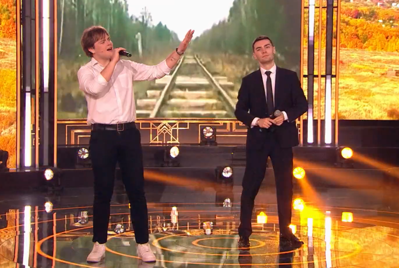Никита Лысак и Александр Гурский во время выступления на программе «Привет, Андрей!»