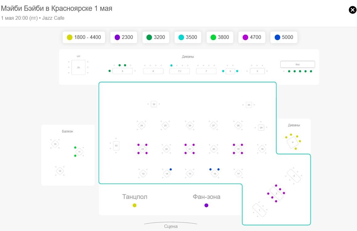 Билеты стоят от 1800 до 5000 рублей. Самые дорогие — за столами в средней зоне, самые дешёвые — на танцполе и в фан-зоне возле сцены. По данным портала qtickets.events, на момент публикации на танцполе оставалось только три места.