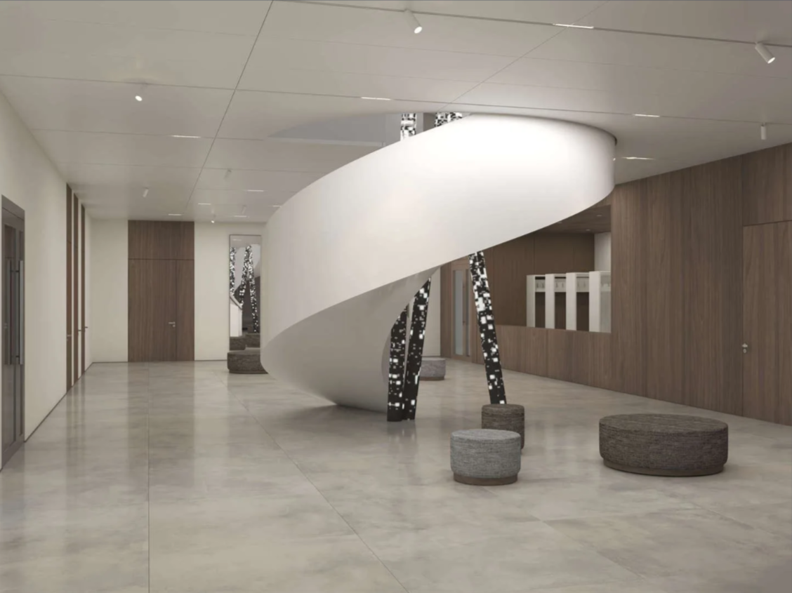 Строительство «Суриков-центра» в Красноярске достигло 44% готовности. Сейчас на объекте начали устанавливать винтовую лестницу, которая станет архитектурной «изюминкой» здания.