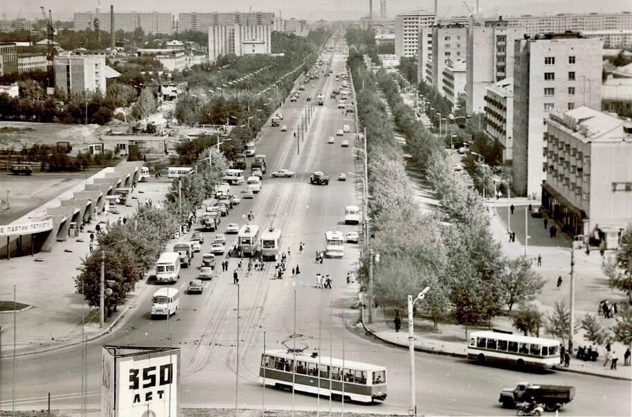 Проспект имени газеты «Красноярский рабочий» в 1970-е годы выглядел особенно зеленым, с множеством деревьев.