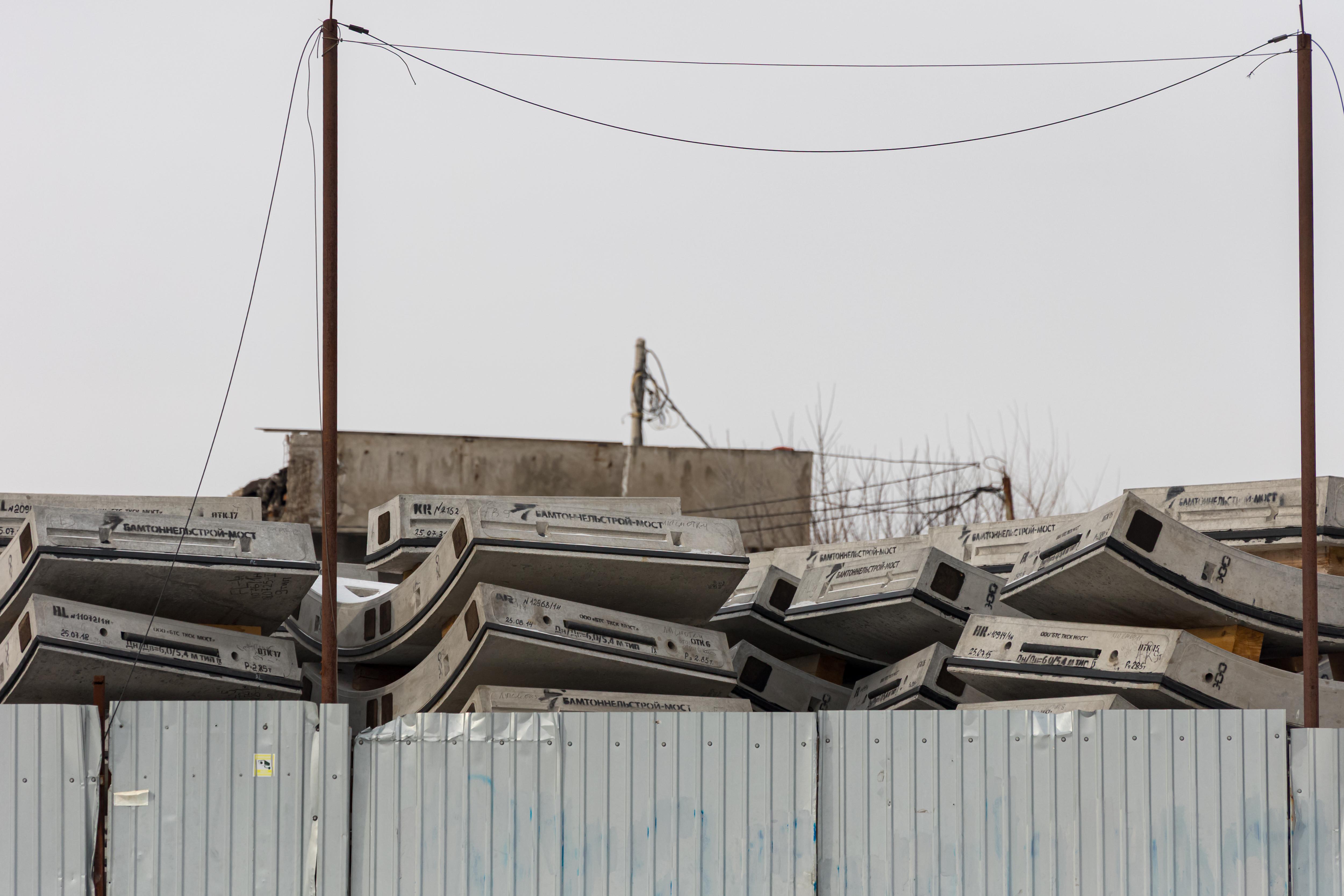 На Предмостной площади в Красноярске были обнаружены сотни бетонных колец, используемых при строительстве метро. Они складированы на территории, где согласно планам должны возвести Дворец молодежи и общественное пространство «Площадь первых».