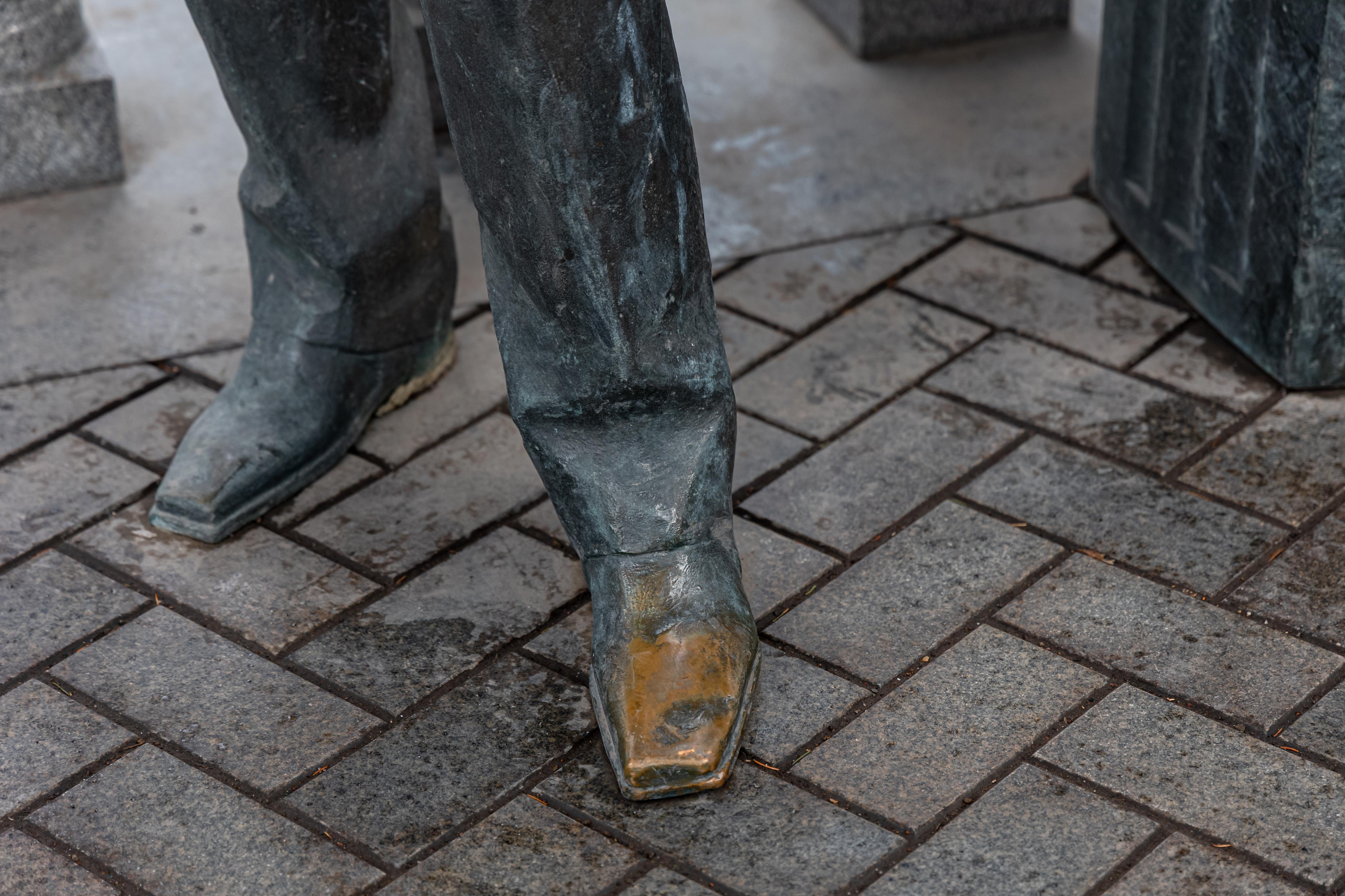С наступлением теплой погоды в Красноярске становятся особенно заметны блестящие от частых прикосновений части городских скульптур. Эти потертости указывают на существующие среди горожан традиции и суеверия.