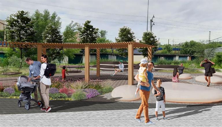 На месте пустыря, который использовался как парковка, создадут зону отдыха с детской площадкой и местами для прогулок.