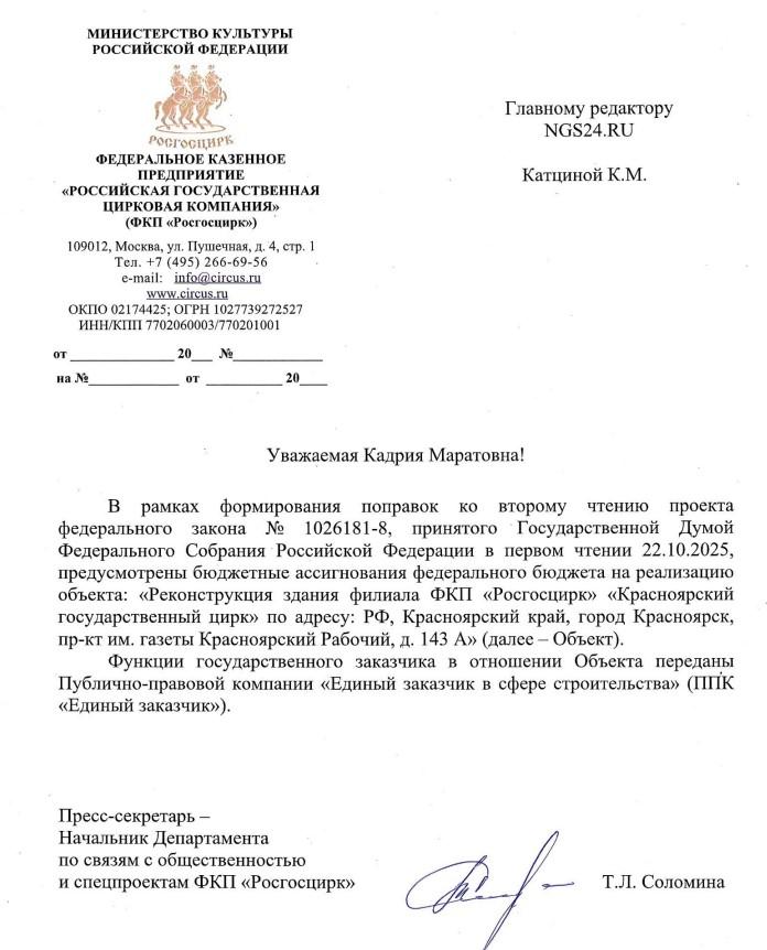 Восстановление здания красноярского цирка профинансируют из средств федерального бюджета. Координировать работы будет Российская государственная цирковая компания «Росгосцирк», которая является федеральным казенным предприятием и курирует 36 стационарных цирков и пять цирков-шапито по всей стране.