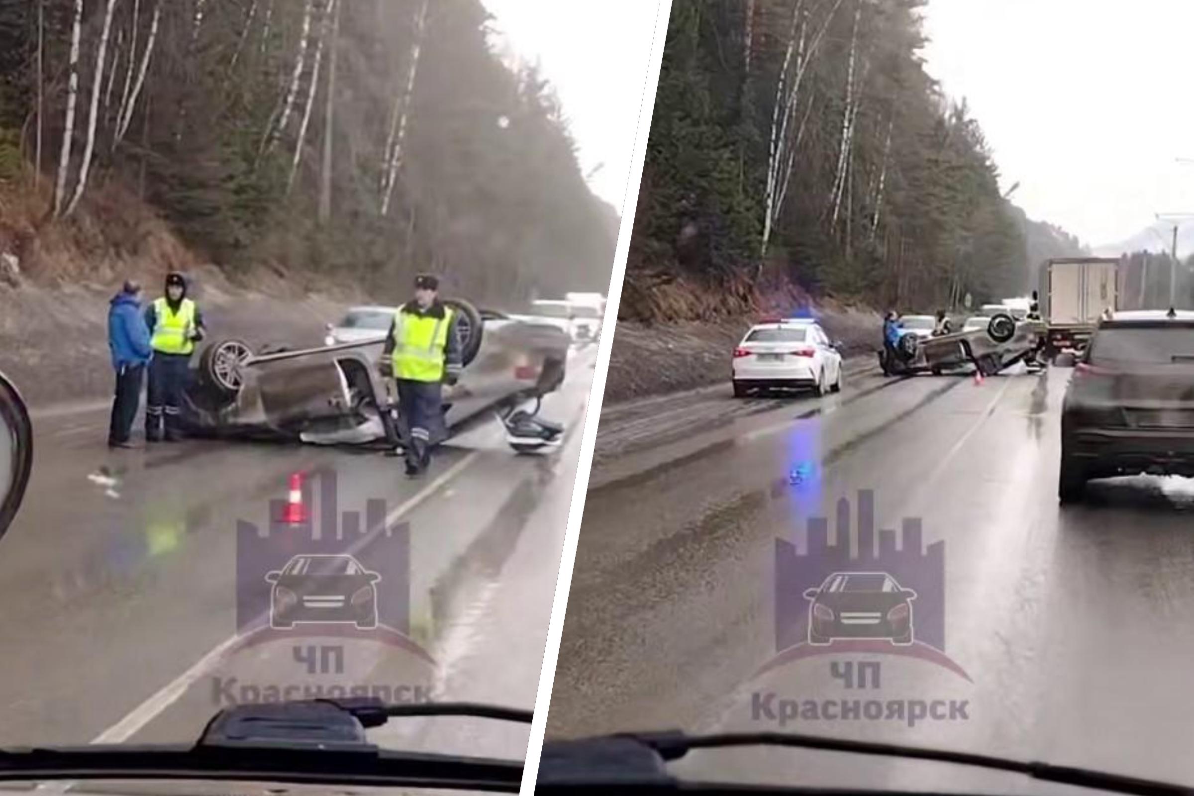 В четверг, около трех часов дня, на автодороге, соединяющей Красноярск и Дивногорск, произошла авария с опрокидыванием транспортного средства.