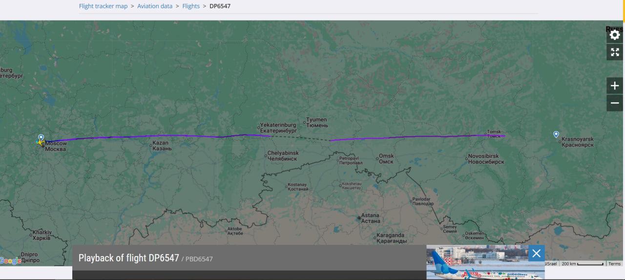 Часть маршрута не отображалась из-за зоны покрытия сервиса, а после Томска рейс вообще пропал с экранов.