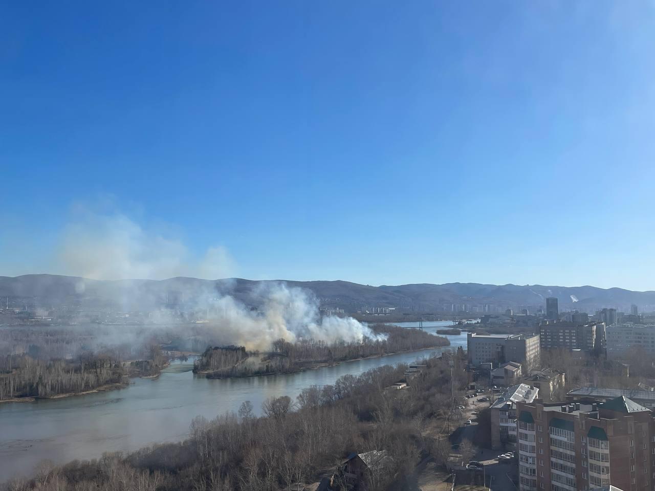 На острове Татышев в Красноярске произошло возгорание сухой травы. Сообщение о пожаре поступило в МЧС в 16:51.