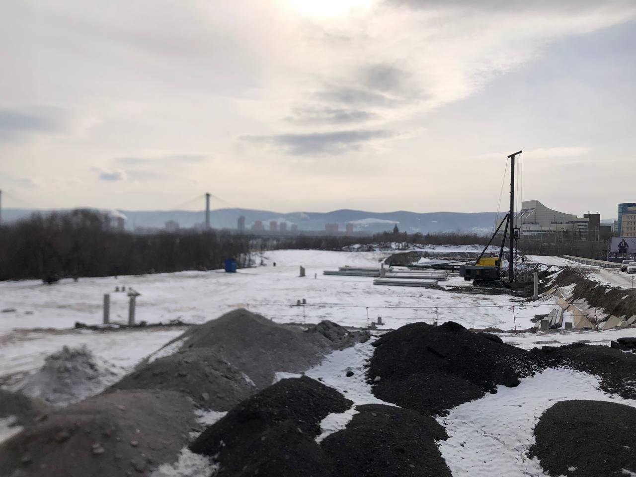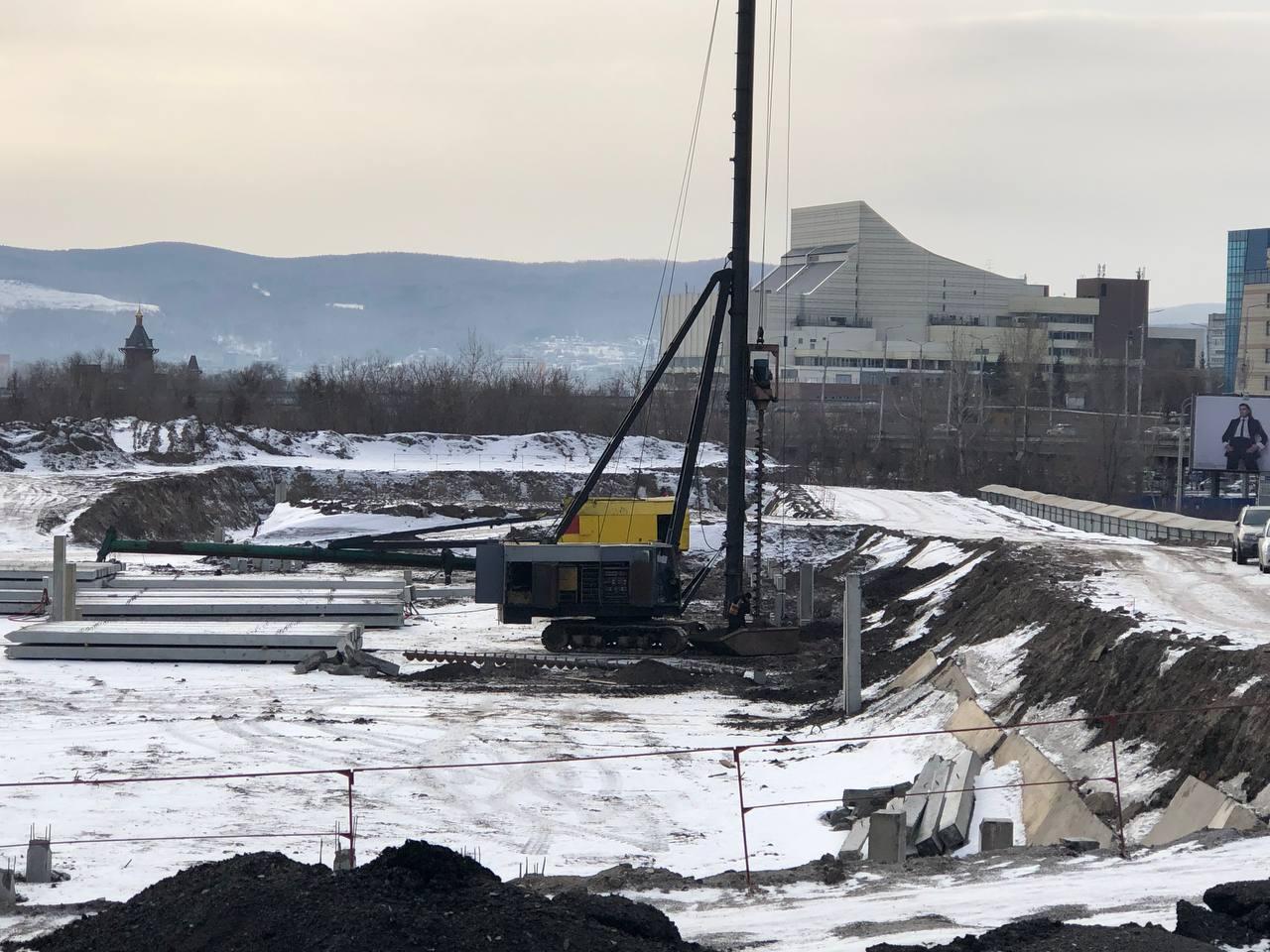 В Красноярске на Стрелке вбили сваи для гостиницы