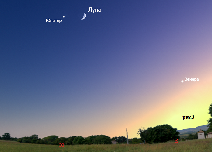 На схеме изображено вечернее небо 22 апреля: Луна расположится между Юпитером и Венерой.