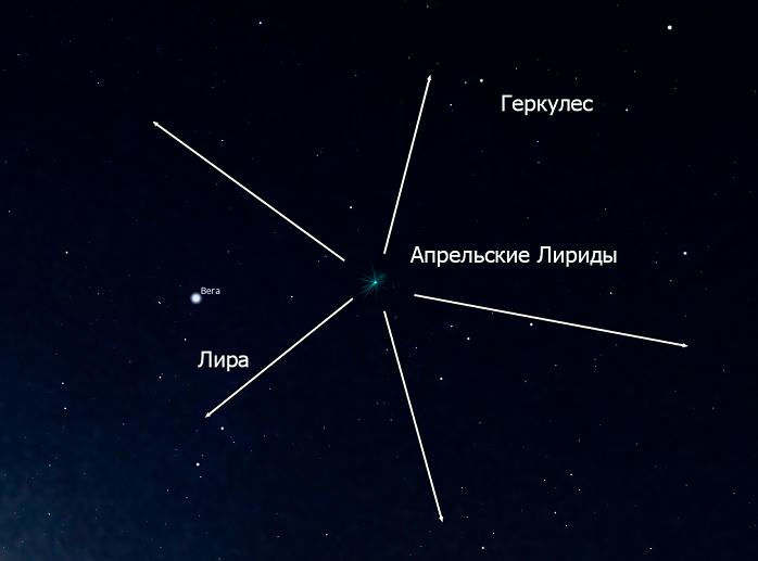 Радиант метеорного потока Лириды находится рядом со звездой Вега в созвездии Лиры. В эту точку стоит направлять взгляд в ночь на 22 апреля.