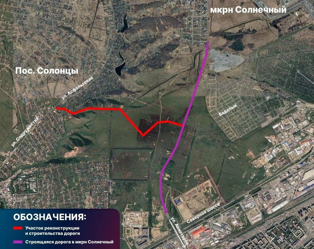 Схема планируемой дороги в Солонцах и её соединение с новой магистралью в Солнечный